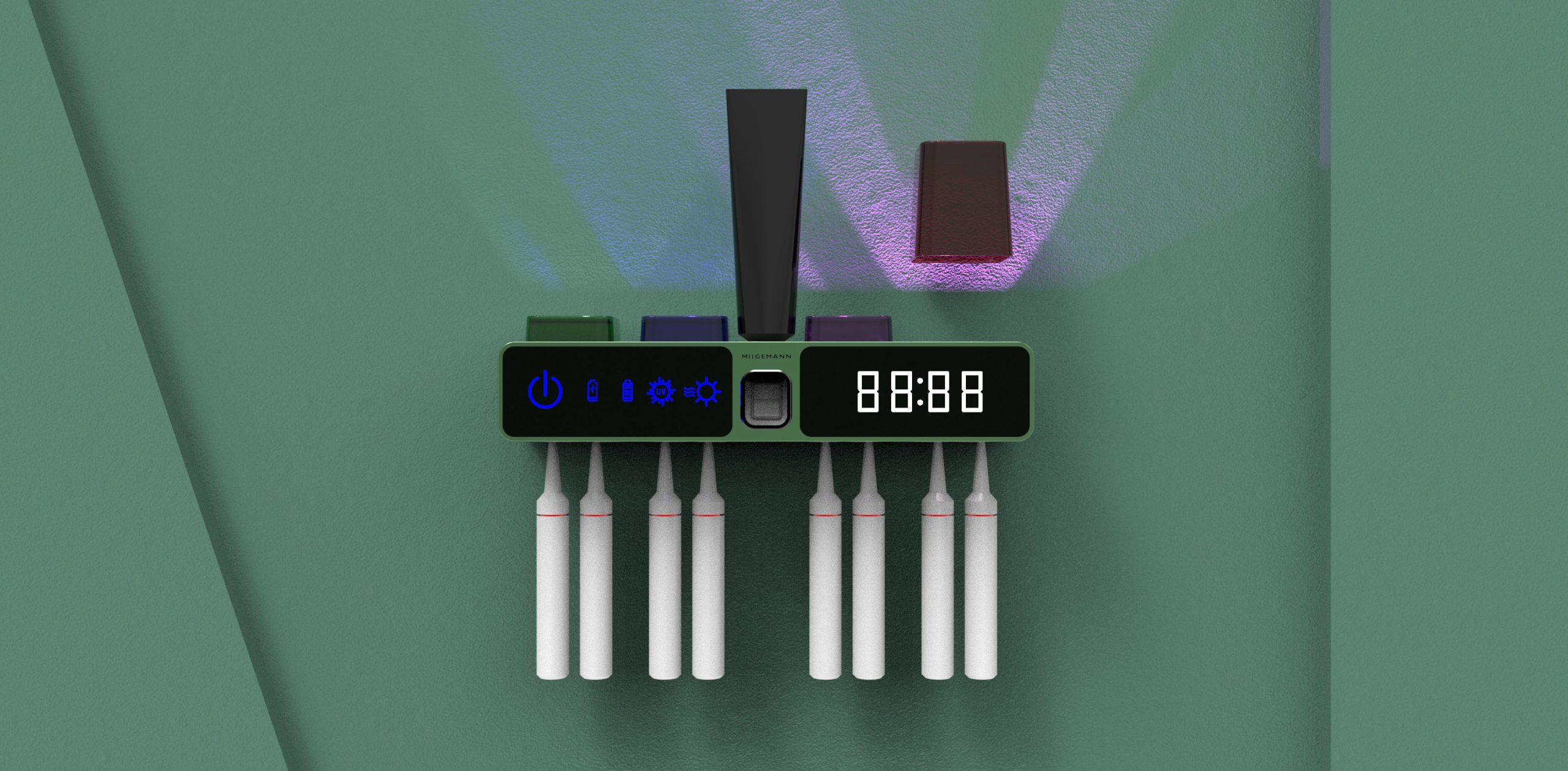 设计团队:美格曼工业设计 服务内容:工业设计 | 产品设计| 外观设计 | 结构设计 | 机械设备设计 | 包装设计 | 品牌设计 | 样机制作 项目简介:外观融合现代简约美学,流畅线条勾勒出小巧身形,轻松融入各类家居风格。材质选用环保抗菌材料,安全无异味。独特的开合设计,取放牙刷便捷,内置的精准紫外线消毒灯,全方位无死角消杀病菌,守护口腔健康。